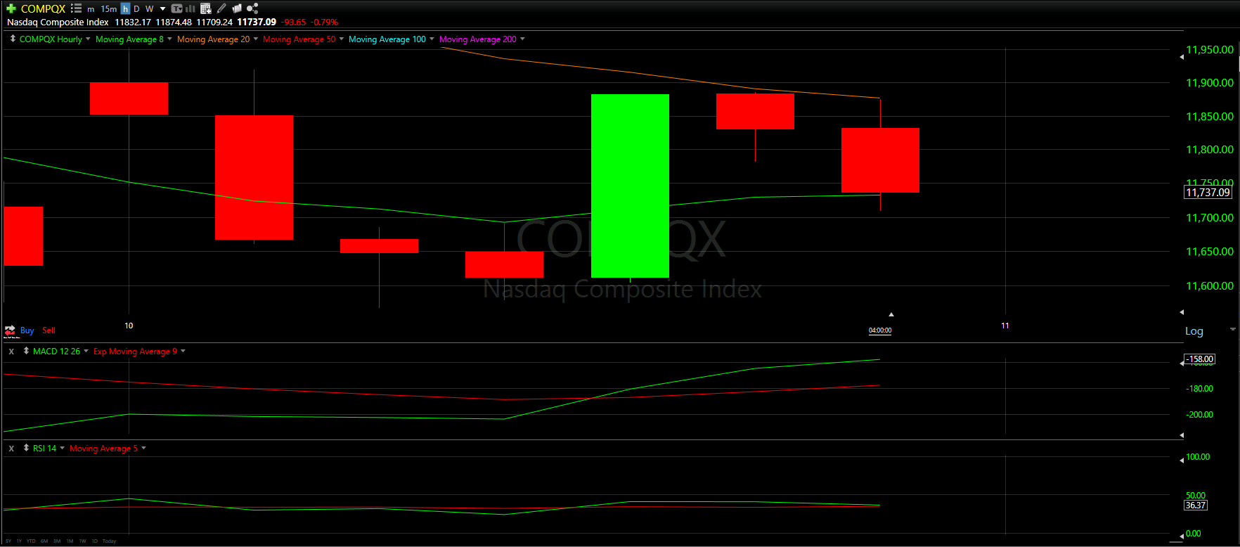The day started out decent for the NASDAQ, with the first hour opening above the 8 Moving Average line.